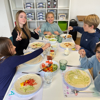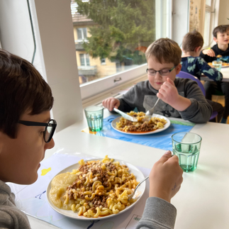 Seit Januar kochen wir wöchentlich mit den Schülerinnen und Schülern. Jede Woche lernt die Klasse ein neues Rezept kennen. Einige kochen die schmackhaften Menus auch zuhause nach. Die Genussmomente machen zusammen noch mehr Freude.
